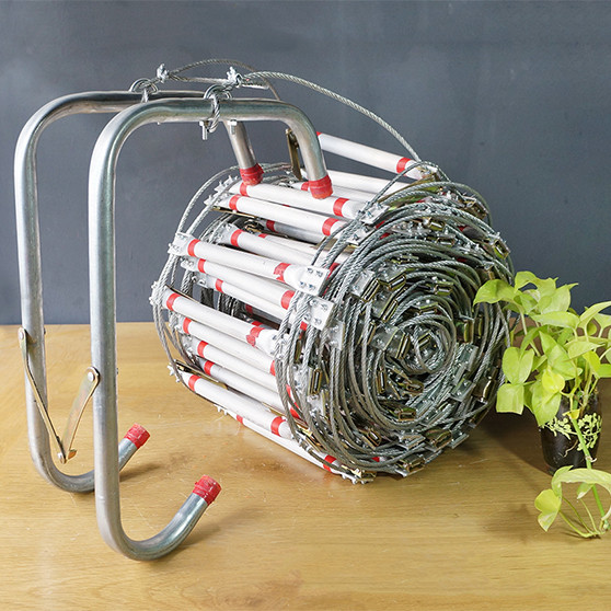 Đây là trang bị đơn giản, rẻ tiền nhưng lại cực kỳ hữu dụng trong trường hợp chung cư xảy ra cháy. Trong trường hợp có cháy nổ khi ở nhà, chung cư cao tầng, bạn có thể dùng dây thoát hiểm hạ chậm móc vào thành ban công hay cửa sổ chắc chắn, sau đó đu xuống mặt đất. Tùy theo độ cao của nơi ở mà bạn lựa chọn dây có độ dài khác nhau.