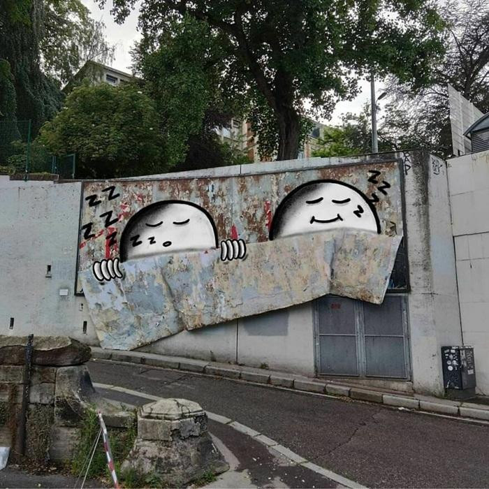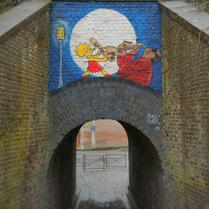Sở hữu hơn 120K lượt theo dõi trên trang Instagram cá nhân, Oak Oak là nghệ sĩ đường phố người Pháp được yêu mến nhờ những tác phẩm hài hước, vui nhộn được anh thường xuyên đăng tải qua tài khoản @oakoak_street_art.