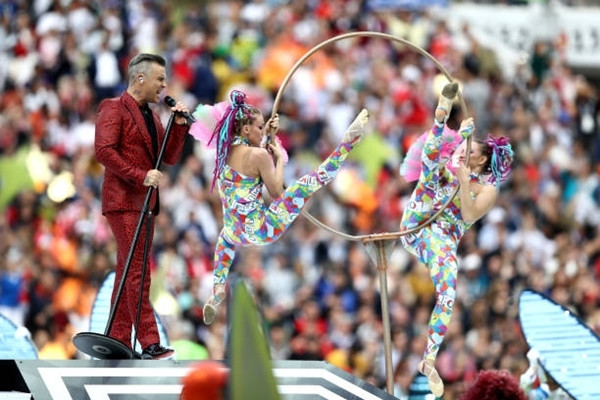 Nữ ca sĩ opera của nước chủ nhà Nga, Aida Garifullina, xuất hiện trong hình ảnh một chú chim lớn, hát ca khúc về nước Nga. Sau đó, Robbie Williams trở lại sân khấu và song ca cùng đồng nghiệp.