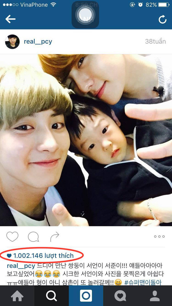 Lần đầu tiên Chanyeol có ảnh đạt hơn 1 triệu lượt thích trên Instagram, cũng là ảnh chụp cùng với Baekhyun chứ không phải ảnh một mình.