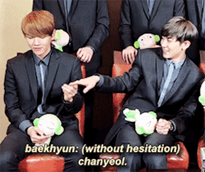 Trong một show truyền hình, Baekhyun nhắm mắt lại để chơi trò “tay ải tay ai”. Cho dù Chanyeol đã tháo nhẫn ra để đánh lạc hướng, thì Baekhyun vẫn đoán trúng ngay lập tức.