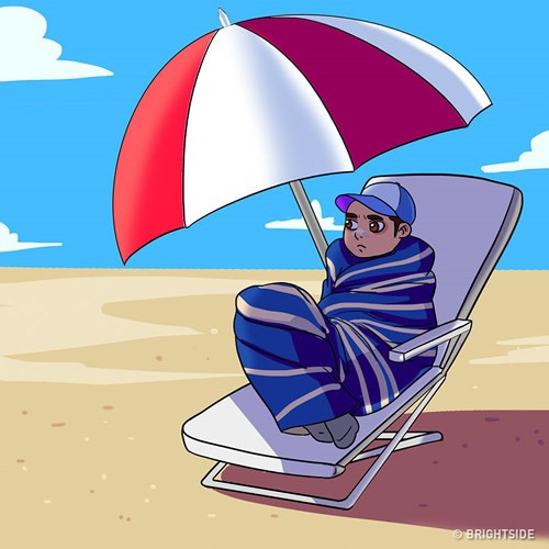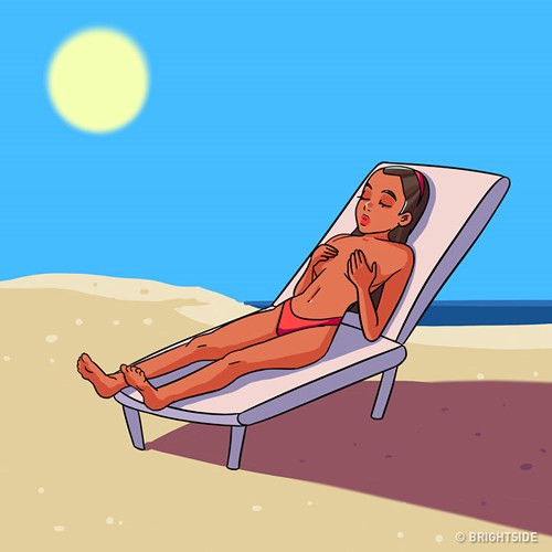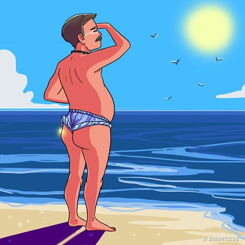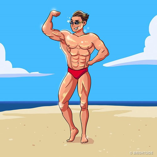 Người yêu ánh mặt trời: Câu cửa miệng của họ chính là: "Đi biển không đen không về". Họ thường mang chiếc quần bơi thoải mái. Hơn nữa, những người này thường thoải mái đi dạo trên bãi biển mà không lo ánh mặt trời.