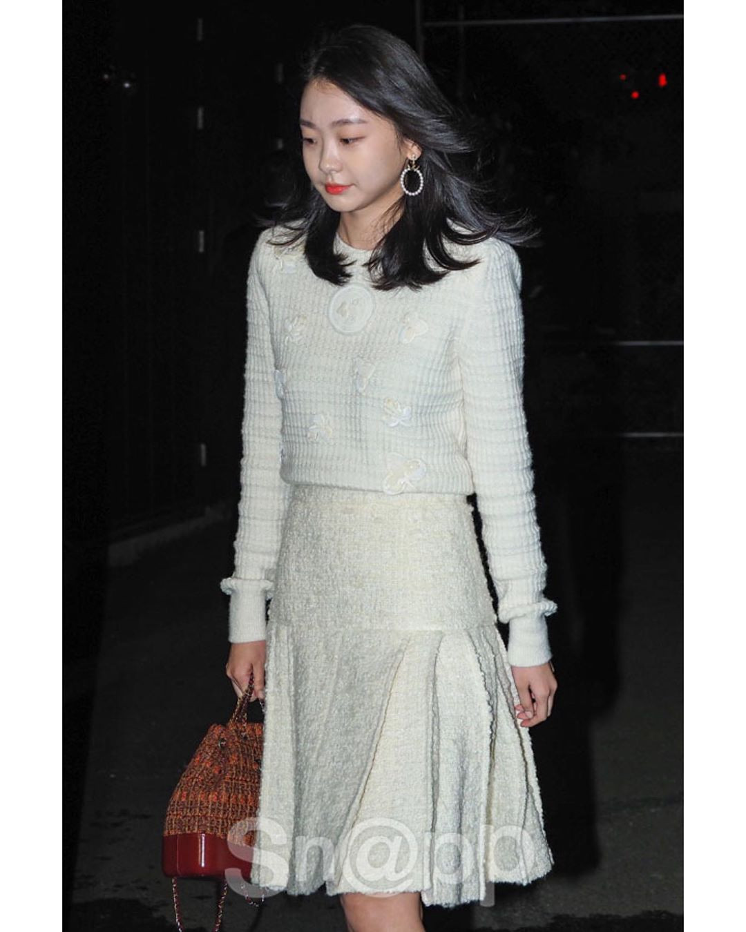 Áo len thêu và chân váy tweed cùng tông màu, Kim Da Mi xinh đẹp mang lại cảm giác dịu dàng khác hẳn với hình ảnh cá tính trong Itaewon Class.