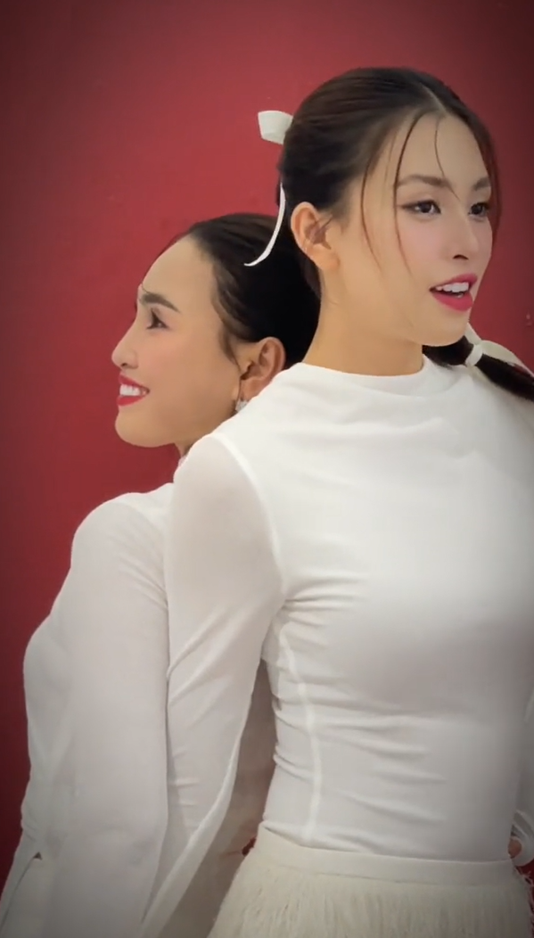 Mới đây, trên trang cá nhân, Hoa hậu Tiểu Vy đã đăng đoạn video hậu trường chụp ảnh cùng mẹ. Trong đoạn clip, hai mẹ con nàng hậu trang điểm nhẹ nhàng và ăn mặc giống nhau. Khi đứng trước ống kính, cả hai đều tập trung tạo dáng như hai chị em thân thiết. Có thể thấy, nàng hậu sở hữu gương mặt sắc sảo với nhiều đường nét rất giống với mẹ, đặc biệt là nụ cười duyên dáng.