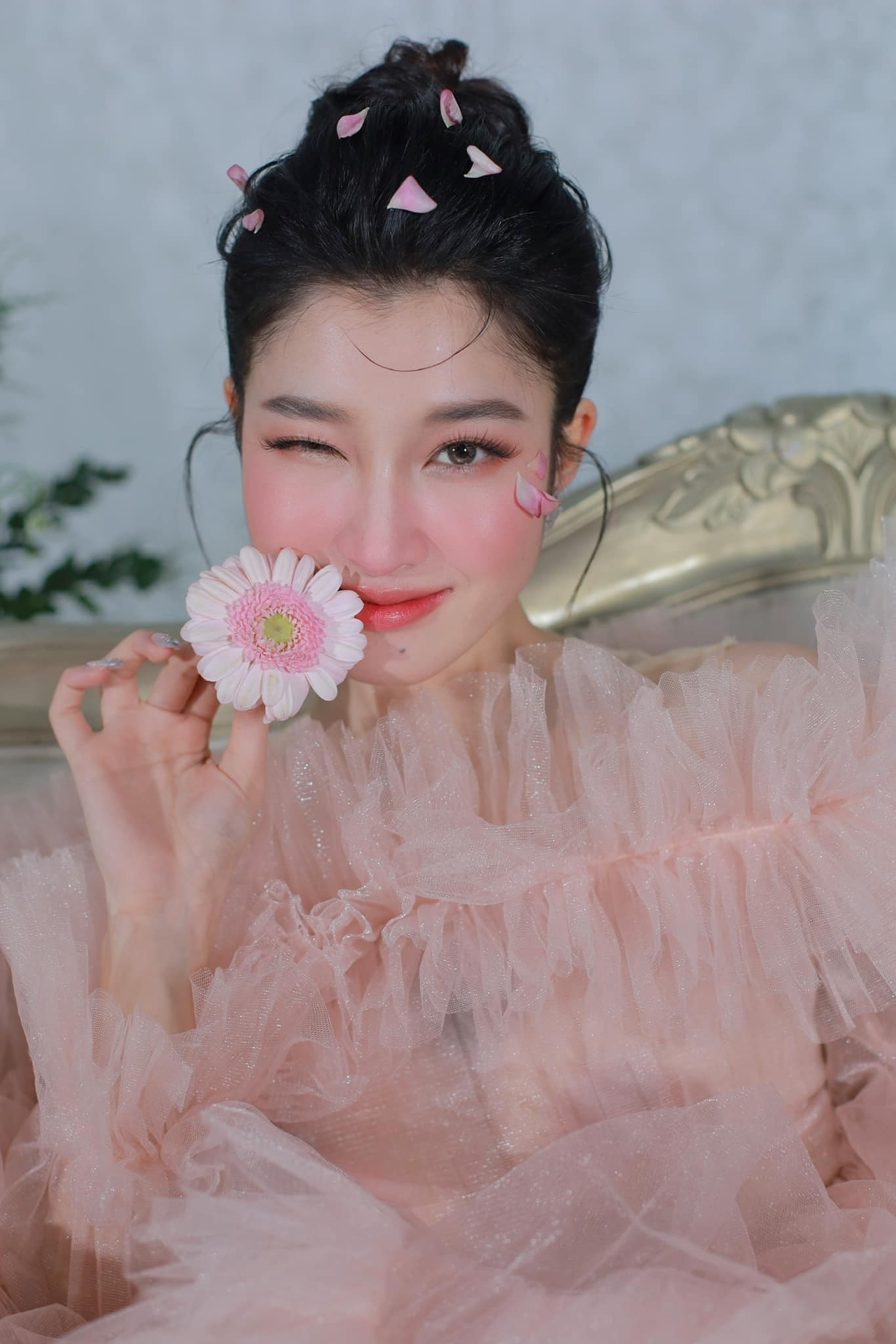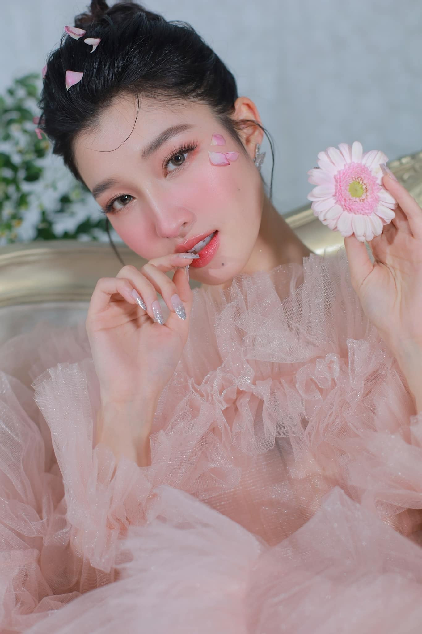 Rất nhiều nàng hậu của công ty Sen Vàng đang có trào lưu mặc váy áo lộng lẫy, trang điểm trong veo rồi chụp ảnh cùng hoa. Phương Nhi cũng không đứng ngoài xu hướng và vừa tung ra bộ ảnh mang đậm không khí thần tiên.