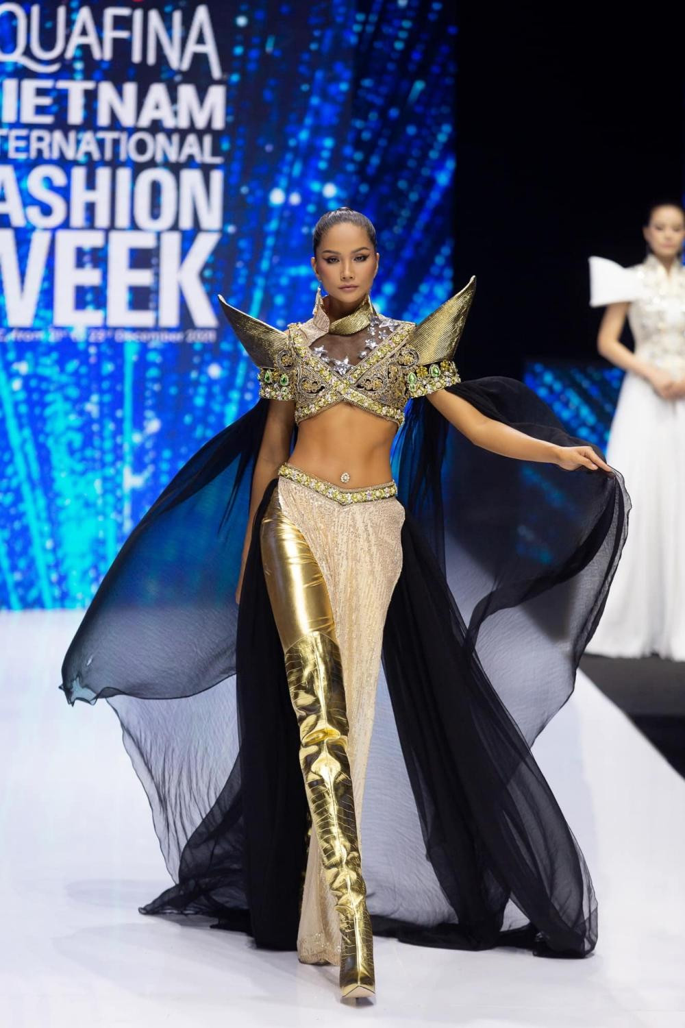 Tại Tuần lễ Thời trang Quốc tế Việt Nam 2021 ngay sau đó, Hoa hậu H’Hen Niê tiếp tục có những màn catwalk với thần thái “đỉnh của chóp”.
