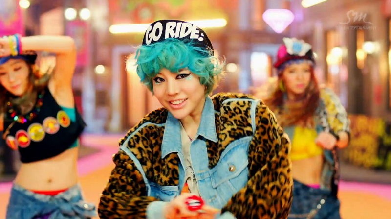 Qri (T-ARA) từng để tóc xanh trong Day by day, nó giúp cô tạo ra điểm nhấn của riêng mình.