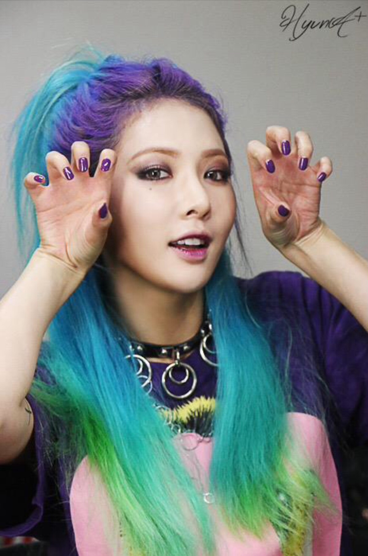 Hyun Ah chọn toàn tông lạnh để nhuộm ombre nhằm tạo nên hình ảnh sắc lạnh, cá tính.