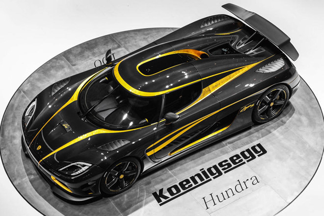 Koenigsegg Agera S Hundra: Mẫu xe thứ 100 được hãng sản xuất dựa trên siêu xe Koenigsegg Agera S, thuộc sở hữu của một nhà sưu tập Hồng Kông, được đặt tên là Hundra. Chi tiết khiến Hundra trở nên độc đáo là thân xe làm bằng bằng sợi carbon không sơn, được dát bằng lá vàng cao cấp 24 cara, với các chi tiết cắt tỉa tinh xảo ở mặt dưới cánh lướt gió phía sau.