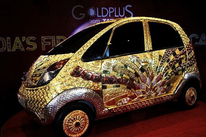 Tata Nano GoldPlus: Tata Nano là một trong những xế hộp rẻ nhất thế giới, với mức giá chỉ 3.360 USD tại Ấn Độ. Công ty trang sức GoldPlus đem dát 67.5kg vàng 22 cara, 12,6 kg bạc và vô số đá quý khác lên chiếc xe rẻ nhất thế giới này. Kết quả là chiếc xe có giá 4.570.000 USD. Và người ta vẫn đang chờ đợi sự giải thích có lý nhất của nhà sản xuất cho chiếc xe đắt đỏ này.