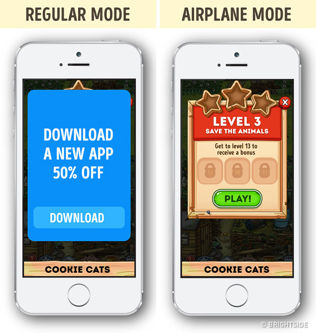 Nếu bạn thường xuyên chơi game miễn phí, hẳn là bạn phải đối mặt với những quảng cáo gây phiền nhiễu xuất hiện trên màn hình của trò chơi. Để thoải mái chiến tiếp game, bạn hãy chuyển điện thoại thông minh của bạn sang chế độ trên máy bay để không còn thấy quảng cáo nữa.