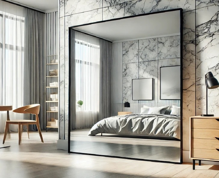 Gương có khả năng phản chiếu ánh sáng, vì vậy một chiếc gương cao lớn và cao, được đặt dựa nghiêng vào tường sẽ giúp tạo hiệu ứng căn phòng rộng rãi hơn. Nếu căn phòng có cửa sổ, hãy đặt gương đối diện để khuếch đại ánh sáng tự nhiên, khiến cả căn phòng bừng sáng, đầy sức sống.