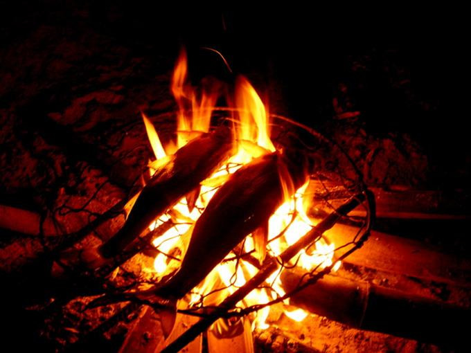 Trưa hay chiều tôi đi học về, việc đầu tiên là chạy thẳng vào bếp. Tôi như con chim non nói huyên thuyên đủ thứ trên trời dưới biển, mắt không quên thỉnh thoảng liếc qua đống than đỏ. Ông cười cười biết ý, lấy que đời khều ra cho tôi khi củ khoai lang khoai tây, khi bắp ngô, khi quả chuối... Mắt tôi sáng rực, nhón lấy bọc đen xì truyền hết từ tay này sang tay khác vì nóng. Ông kéo tôi lại, cầm lấy củ khoai hay bắp ngô xoay xoay giữa hai lòng bàn tay đến khi bớt nóng mới đưa lại cho tôi. Tôi bẻ ra làm hai, phần to tôi giữ, phần nhỏ đưa ông. Tôi bảo ông tôi thích ăn chuối nướng. Ông gật gù, trêu: “Vì chuối không bẻ được phỏng?”. Tôi lắc đầu nguầy nguậy. Tôi thật sự thích chuối nướng mà. Đến giờ, tôi vẫn chẳng thể tìm thấy được một mùi hương nào thơm như thế. Hương thơm ngọt như thể cả đất trời chắt mật mà ủ vào.