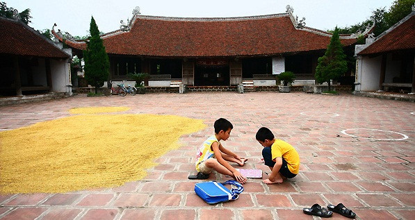 Vẫn nhớ ngày bé, khoảng sân trước nhà rộng thênh thang, mỗi mùa gặt lại chất đầy ú ụ thóc vàng ươm như núi cát trên sa mạc. Ngày bà hẵng còn, mấy bà cháu chạy mưa cho lúa, lưng bà đau mà vẫn cúi, quét thoăn thoắt. Trưa nắng, mẹ sai đội nón đi đảo lúa, chân trần ngứa ran…