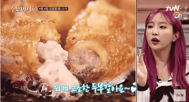 Gopchang cũng có tên trong danh sách những món ăn mà người phương Tây tránh thật xa. Gopchang được làm từ lòng của bò hoặc lợn, có thể mang nướng hoặc hầm nhừ và được bày bán rất nhiều tại các quán ăn hè phố Hàn Quốc. Hani (EXID) mê mẩn món này, ăn hoài mà không chán dù chúng chứa rất nhiều chất đạm, dễ gây tăng cân. Hoặc như Hwasa (Mamamoo) cũng bất ngờ được yêu mến sau cảnh vô tư đi ăn gopchang ở một quán bình dân.