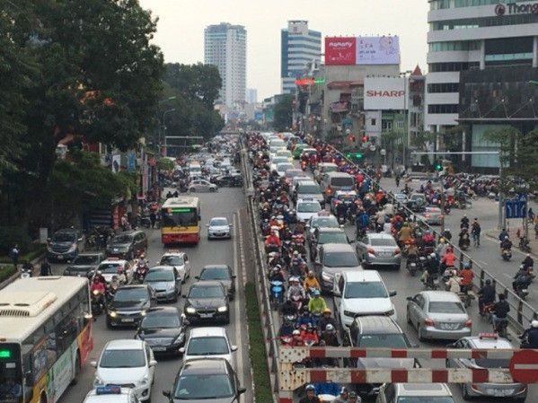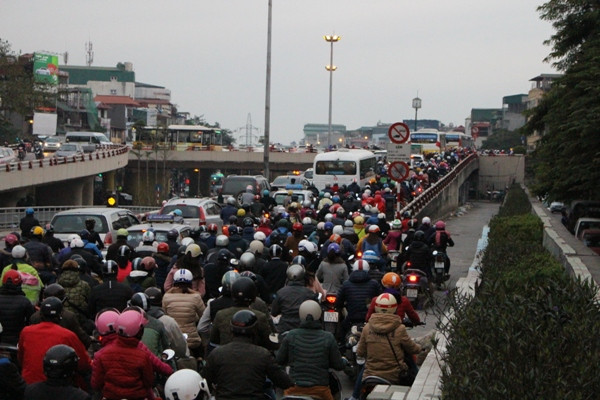 Tuy nhiên, do ý thức của nhiều người dân tham gia giao thông chưa tốt nên tình trạng ùn tắc vẫn xảy ra liên tục. Ảnh chụp tại ngã ba Lò Đúc - Yecxanh.