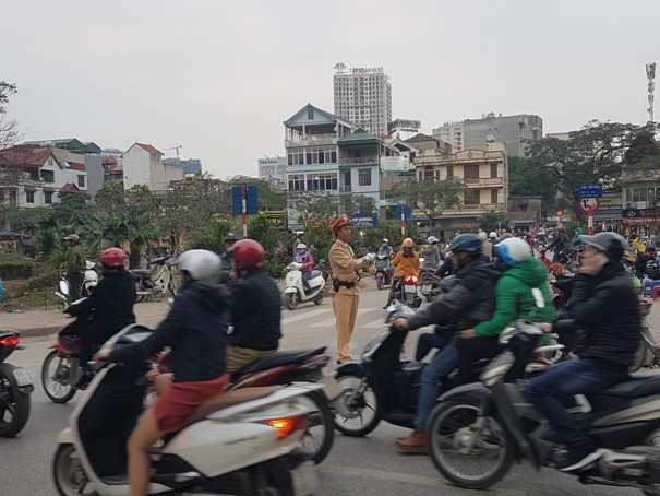 Lực lượng CSGT thường xuyên túc trực tại các nút giao để phân luồng giao thông.