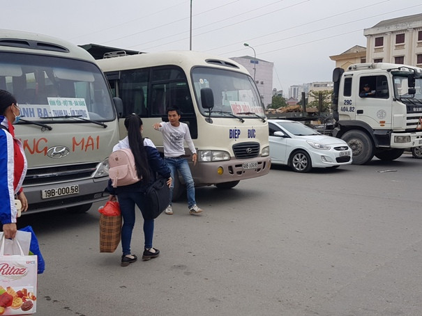Trên đường Phạm Văn Đồng, các xe khách hiên ngang bắt khách dọc đường bất chấp cảnh ùn tắc.