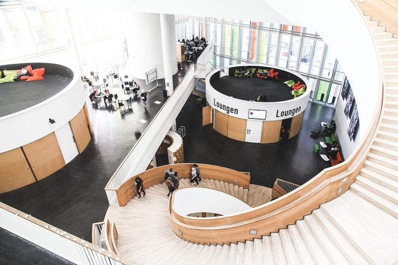 Ở Ørestad Gymnasium, với cấu trúc hình lập phương, cả ngôi trường là một lớp học khổng lồ. Thiết kế này hướng tới việc sử dụng một cách linh hoạt và hợp lý những môi trường học tập khác nhau. Nhờ những bức tường “di động”, các học sinh có thể thấy nhau bất kì lúc nào để hỗ trợ lẫn nhau. Việc học trong một không gian nhằm giúp học sinh phát triển khả năng tư duy một cách toàn diện, đa chiều và sáng tạo.
