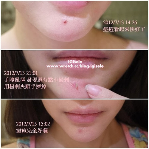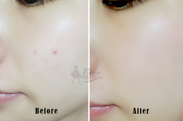 Khi sử dụng, bạn cũng cần dùng tăm bông chấm xuống lớp bột màu hồng ở dưới rồi bôi lên chỗ mụn, tuyệt đối không lắc chai. Dung dịch này có thể gây khô và bong tróc da, nên chỉ sử dụng mỗi ngày một lần vào ban đêm là đủ. Sau một đêm, mụn đã bớt sưng đỏ. Tuy nhiên mùi hương của sản phẩm này có phần hơi nồng.