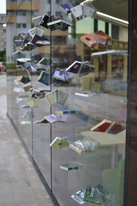Bạn có thể không tin, nhưng đây là cánh cửa của một hiệu sách đấy. Hình ảnh phía trước một cửa hàng sách tại Rumani.