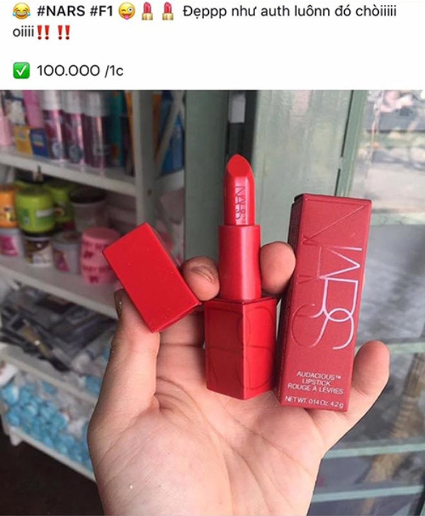 Sau clip thử son của một tín đồ làm đẹp Hàn Quốc, son Nars Rita với toàn bộ thân son phủ tuyền màu đỏ được xem là cây son đỏ "thần thánh" mà cô gái nào cũng nên sở hữu. Vốn là một dòng son cao cấp, giá một cây Nars Rita rơi vào khoảng 800 - 900K - chi phí mà không phải ai cũng bỏ ra được, chưa kể dòng này chỉ sản xuất với số lượng rất hạn chế. Đây là lý do son Nars vỏ đỏ nhái đua nhau tung hoành.