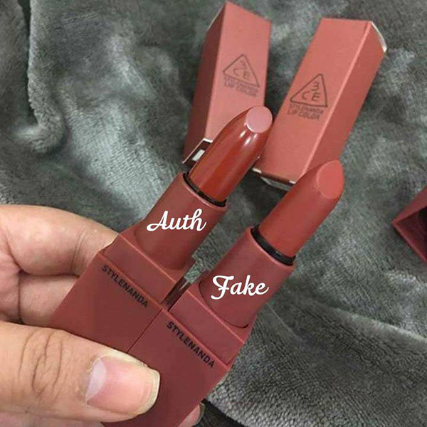 Một trong những điều được các tín đồ làm đẹp quan tâm nhất năm qua đó là cách phân biệt son 3CE hàng auth và fake. Những dấu hiệu để nhận diện hàng nhái đó là màu không chuẩn với trên mạng, thân son nhám không có độ bóng nhẹ, chữ in nhòe...