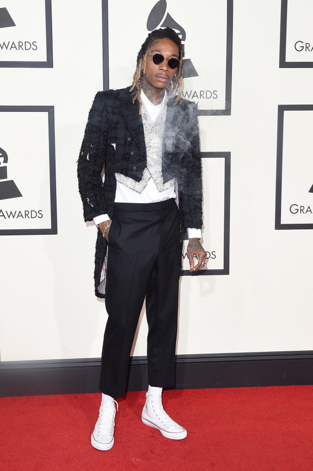 Wiz chắc nghĩ người ta chỉ chụp ảnh phần thân trên thôi, chứ không ai để ý đến đôi giày và tất của anh ý. Trao giải Grammy thôi ý mà, có gì to tát đâu! - hẳn là anh đang nghĩ vậy đúng không Wiz?!