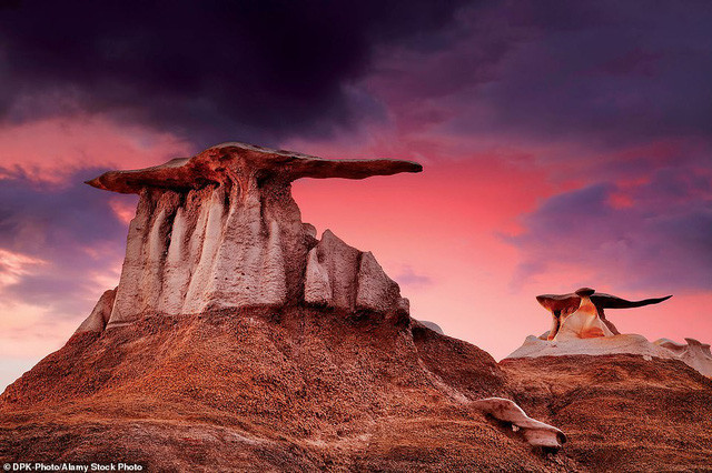 Nằm ẩn mình trong sa mạc xa xôi là những thành tạo đá siêu thực ở rìa phía đông của khu bảo tồn quốc gia Navajo. National Geographic nói rằng vùng đất rộng lớn này sẽ khiến bạn cảm thấy như thể bạn là “sinh vật sống duy nhất trong hàng kilomet trở lại”