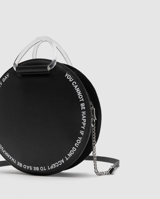 Round city bag with slogan Zara, giá khoảng 1,2 triệu đồng.