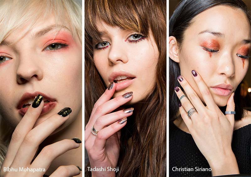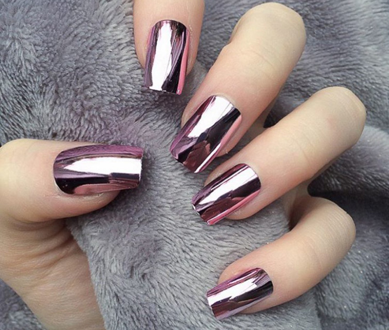 Móng tay ánh kim đang càn quét tất cả các sàn diễn thời trang Xuân - Hè 2018 bởi tính ứng dụng cao, dễ làm và cực kỳ nổi bật. Chỉ cần một lớp sơn base, sơn màu và phủ lên trên cùng một lớp sơn metallic là bạn đã có một bộ móng cực kỳ hợp trend.