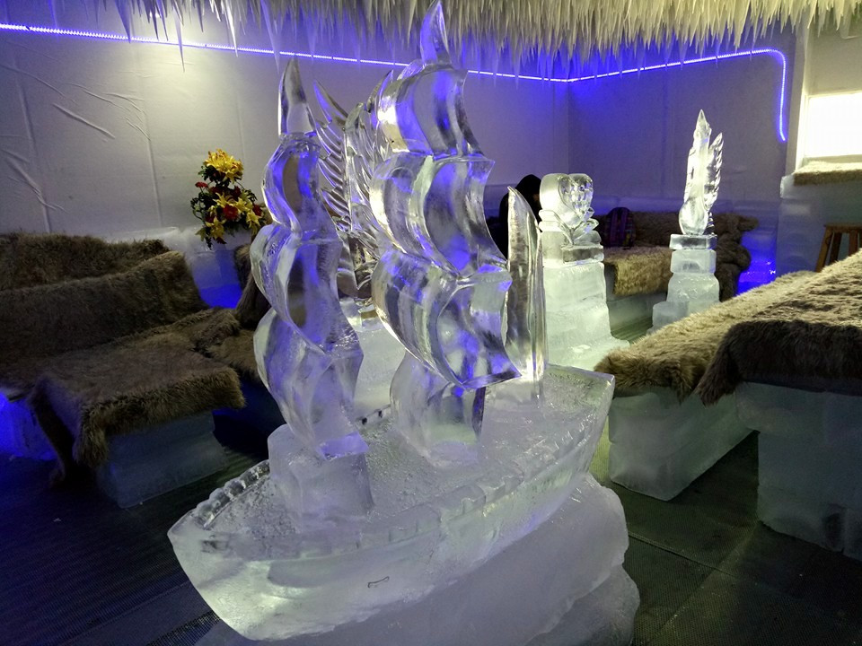 Bạn có từng thắc mắc trang phục của những người sống tại những vùng lạnh quanh năm như thế nào không? Họ mặc những bộ áo khoác lông thú siêu dày, mang bao tay, ủng lông thú và đây chính xác là điều bạn cần làm đầu tiên trước khi vào quán cà phê băng đăng này! Từ những cái bàn, cái ghế đến vật trang trí đèn, tất cả đều được làm từ băng. Bên cạnh đó, bạn cũng sẽ được thưởng thức những điêu khắc băng cực kì đẹp mắt hình chú thiên nga, trái tim băng...