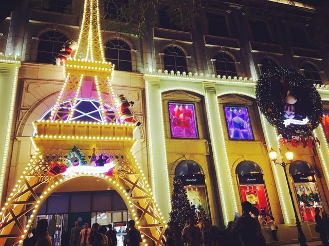Món "đặc sản" của mùa Giáng sinh chắc chắn là khu trang trí cây thông công phu và cực kì sáng tạo đặt tại các trung tâm thương mại rồi! Điều tuyệt vời là số lượng cây thông trang trí năm nay "mọc" lên rất nhiều tại Sài Gòn. Mỗi địa điểm có một cách trang trí rất riêng đáp ứng mọi loại concept chụp ảnh của bạn. Tuy nhiên, thời gian để bạn có pô ảnh ấn tượng nhất vẫn là lúc "phố lên đèn" - sau 18h.