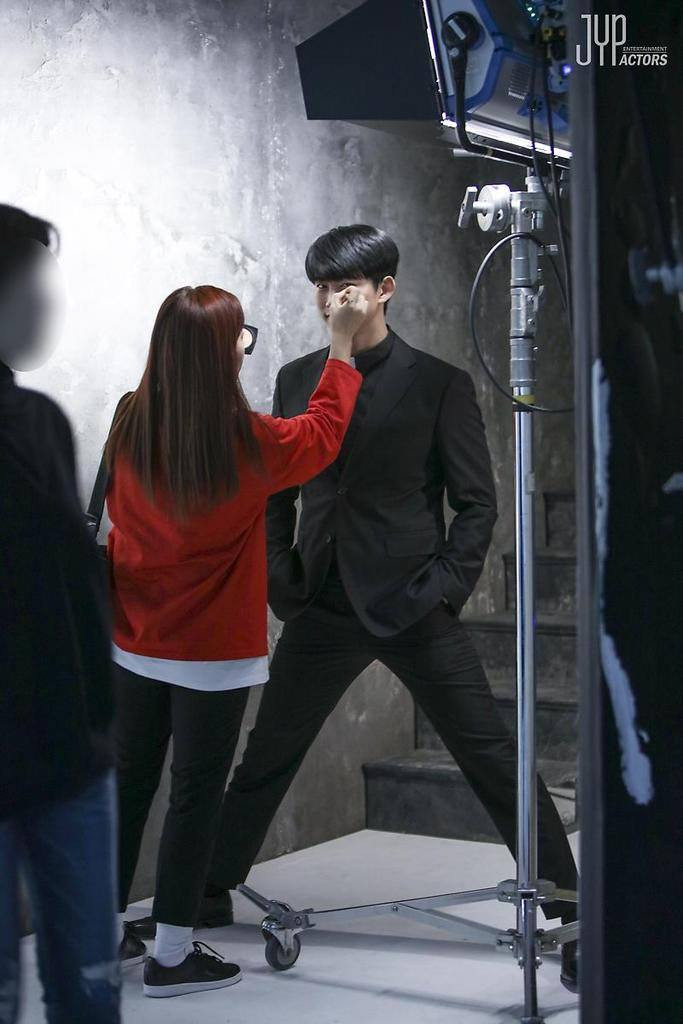 Park Hyung Sik đóng phim có khi cũng không mệt bằng trò đứng xoạc chờ trang điểm như thế này.