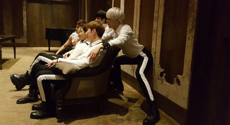 Minhyuk (Monsta X) chỉ có một ước mong duy nhất là chụp ảnh xong thật nhanh, trước khi hai chân tê cứng vì quá mỏi.