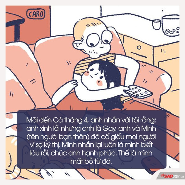 Mãi đến Cá tháng Tư, anh nhắn với tôi rằng: “Anh xinh lỗi nhưng anh là gay, anh và Minh (tên người bạn thân) đã cố giấu mọi người vì sợ kỳ thị”. Mình nhắn lại luôn là mình biết lâu rồi, chúc anh hạnh phúc. Thế là mình mất bồ từ đó”, thương cho một cô gái là nữ phụ trong bộ phim tình cảm đam mỹ.