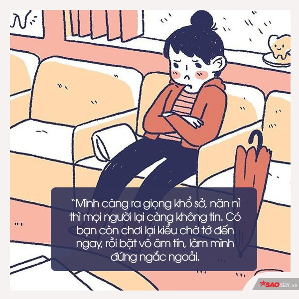 Mình càng ra giọng khổ sở, năn nỉ thì mọi người lại càng không tin. Có bạn còn chơi lại kiểu chờ tớ đến ngay, rồi bặt vô âm tín, làm mình đứng ngắc ngoải. Cuối cùng mình phải gửi xe, gọi xe ôm về. Vừa đau vừa buồn không tả nổi…”, tâm sự của một nữ sinh bị té xe ngay ngày nói dối và dù giận lắm nhưng rồi cũng không trách bạn bè được.