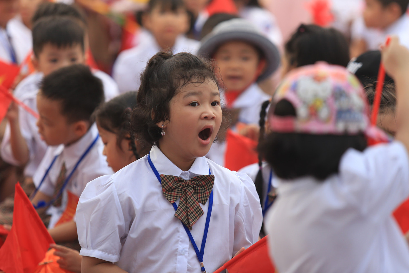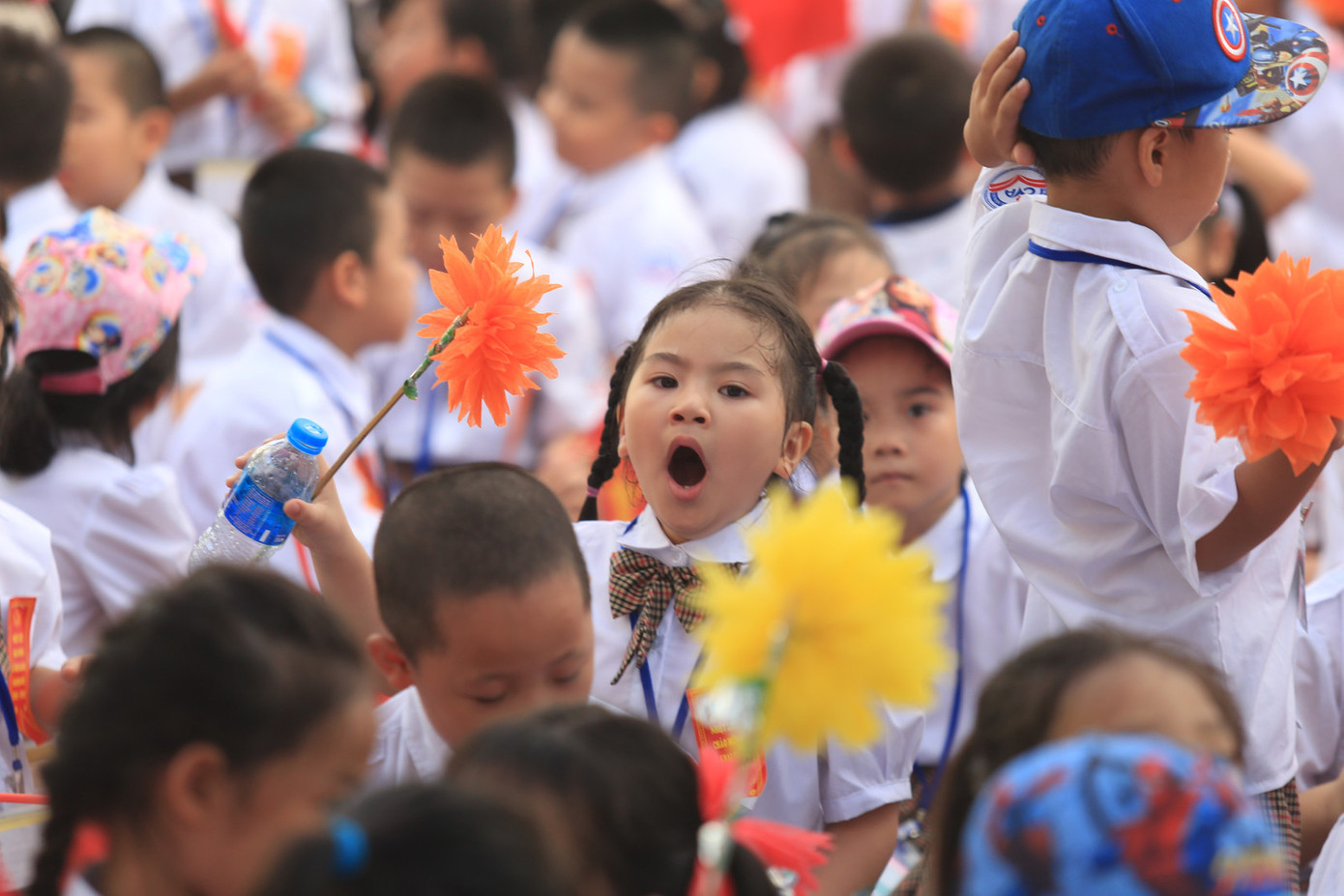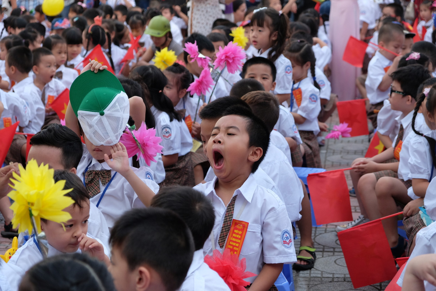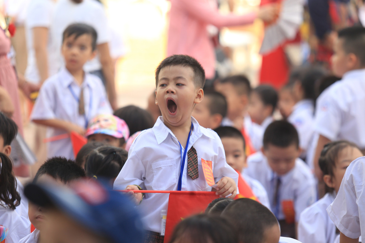 HHTO - Ngái ngủ vì dậy sớm, khóc vì lần đầu đến trường và nóng nực vì phải ngồi hàng giờ liền... nhiều bạn tiểu học không háo hức với khai giảng như các anh chị lớp lớn.