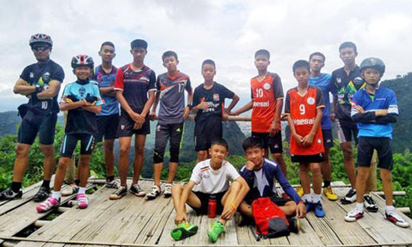 12 cầu thủ (11 đến 16 tuổi) cùng 1 huấn luyện viên mắc kẹt trong hang Tham Luang ở tỉnh Chiang Rai (Thái Lan) từ hôm 23/6; sau hơn 9 ngày, tất cả được tìm thấy nhờ nỗ lực cứu hộ không từ bỏ của những người bên ngoài và của chính thành viên đội bóng.