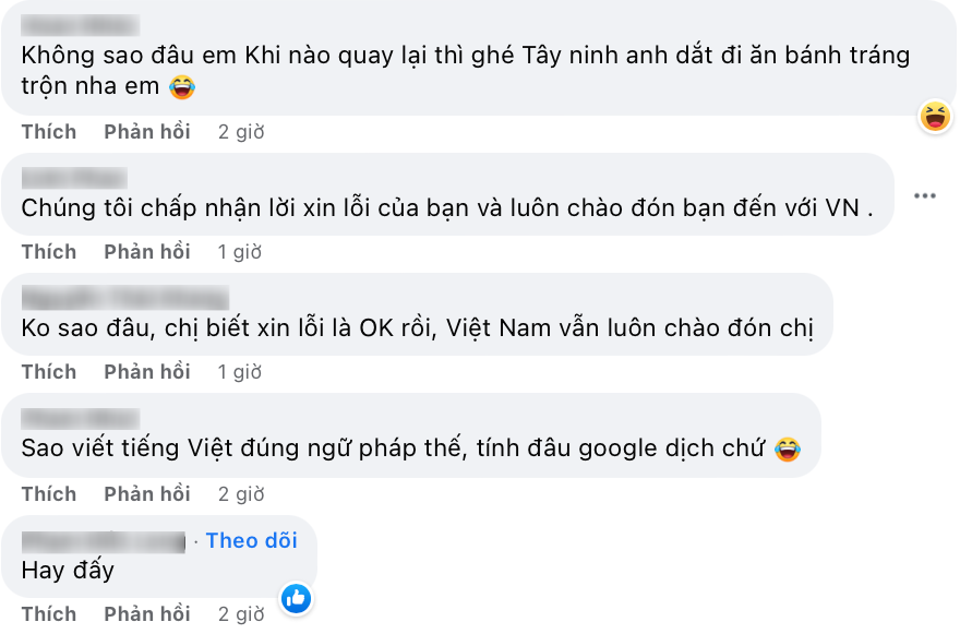 Bài đăng của cô gái trẻ nhanh chóng thu hút sự quan tâm cũng như lượt tương tác lớn từ cộng đồng mạng, đặc biệt là dân mạng Việt Nam. Bên cạnh những bình luận góp ý mang tính xây dựng, thể hiện sự thân thiện, hiếu khách của người dân Việt Nam thì vẫn xuất hiện một số bình luận mang tính khiếm nhã, kém duyên khiến nhiều người bức xúc bởi những lời bông bùa này có thể khiến cộng đồng quốc tế mất thiện cảm với người Việt.