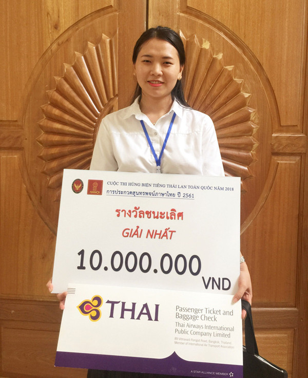 Vỡ òa trong niềm vui chiến thắng, bạn Trần Bảo Trân (sinh viên năm thứ tư, Khoa Đông phương học, chuyên ngành tiếng Thái Lan ĐH KHXH&NV TP.HCM) chia sẻ: “Em đã học tiếng Thái được 4 năm. Chiến thắng 20 thí sinh ở vòng chung kết, em cảm thấy rất vui và hạnh phúc vì bố mẹ sẽ tự hào về em”.