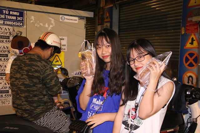 Trong dòng người xếp hàng, Nguyễn Ngọc Châu, Châu Khánh Vi, hai sinh viên năm nhất một trường đại học ở TP.HCM thích thú thưởng thức ly trà với vẻ mặt mãn nguyện.