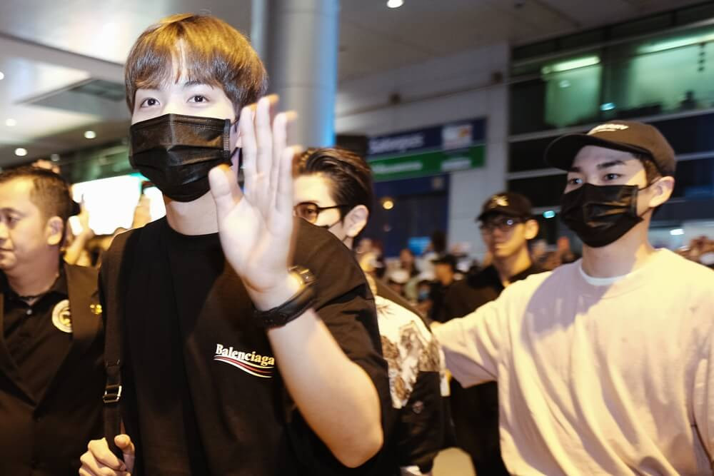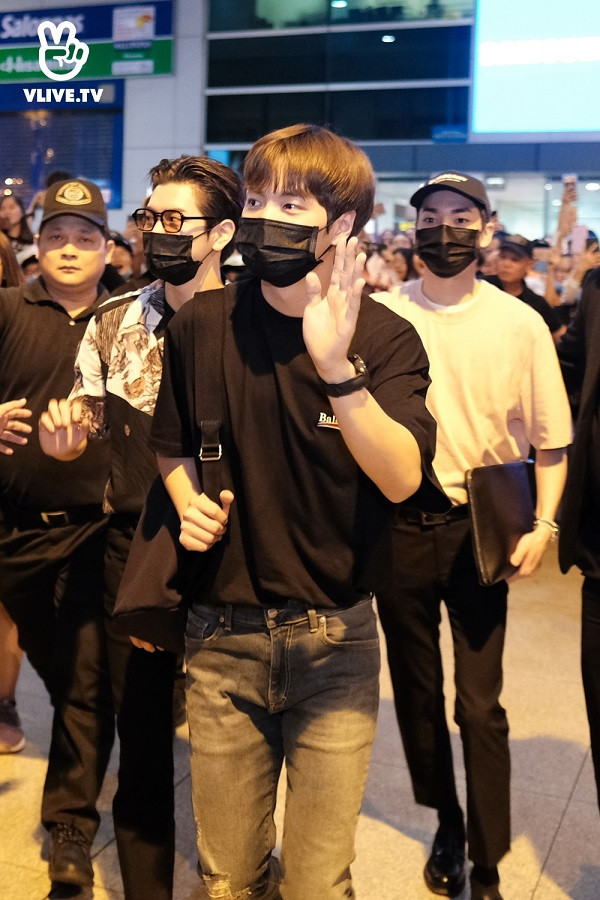 Hạ cánh xuống thành phố Hồ Chí Minh, các chàng trai NU'EST diện trang phục đen trắng giản dị với áo T-shirt và quần jean. Dù đeo khẩu trang che kín gần hết khuôn mặt, nhưng bởi mỗi sắc thái riêng biệt, hàng trăm fan có mặt tại sân bay vẫn nhận ra thần tượng của mình. Các fan đã tập trung tại sân bay từ lúc 15h chiều cùng ngày để chuẩn bị nhằm đảm bảo buổi chào đón NU'EST sẽ diễn ra thật an toàn.