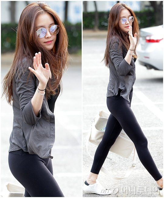 Son Naeun (Apink) vốn có vóc dáng cân đối, đặc biệt là đôi chân thon dài và thẳng tắp. Chẳng thế mà cô nàng chỉ mặc quần legging thôi cũng đủ gây bão, trở thành “Nữ hoàng legging” không ai thay thế được trong K-Pop.