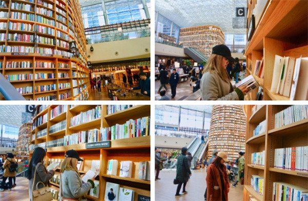 Những ai lần đầu tiên đặt chân tới Starfield đều choáng ngợp bởi không gian rộng lớn cùng với những thiết kế vô cùng hoành tráng. Nơi đây trưng bày khoảng 50.000 đầu sách và tạp chí dành cho mọi người tới đọc. Tuy nhiên, hầu như các ấn phẩm đều là phiên bản tiếng Hàn nên với những người không biết ngôn ngữ này, thư viện Starfield chỉ có giá trị check-in.