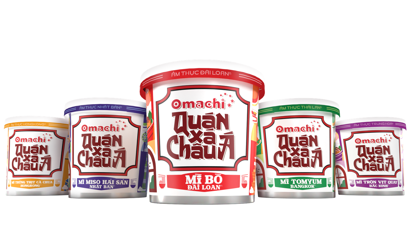 Ở lần ra mắt đầu tiên, nhãn hàng giới thiệu 5 món ngon Châu Á gồm: Mì Bò Đài Loan, Mì Vịt quay Bắc Kinh, Mì Miso Hokkaido, Mì Trứng thịt cà chua Hongkong và Mì Tomyum Bangkok. Tiếp theo đó, Omachi dự kiến sẽ tiếp tục mở rộng danh mục của Hộp Đồ Ăn Quán Xá Châu Á thông qua việc khai thác sâu hơn vào văn hóa ẩm thực của nhiều quốc gia trong khu vực – hướng đến hoàn thiện menu 30 món ngon châu Á đến cuối năm 2026.