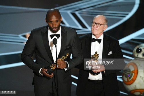 Kobe Bryant (trái) và Glen Keane nhận giải Phim hoạt hình ngắn hay nhất cho Dear Basketball.