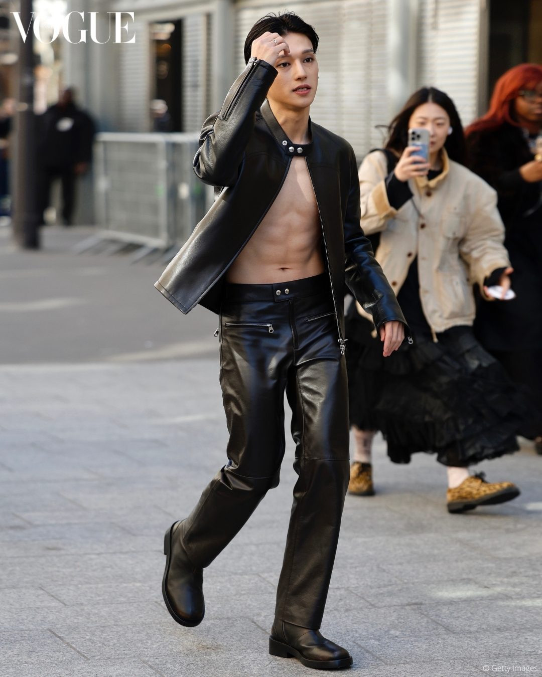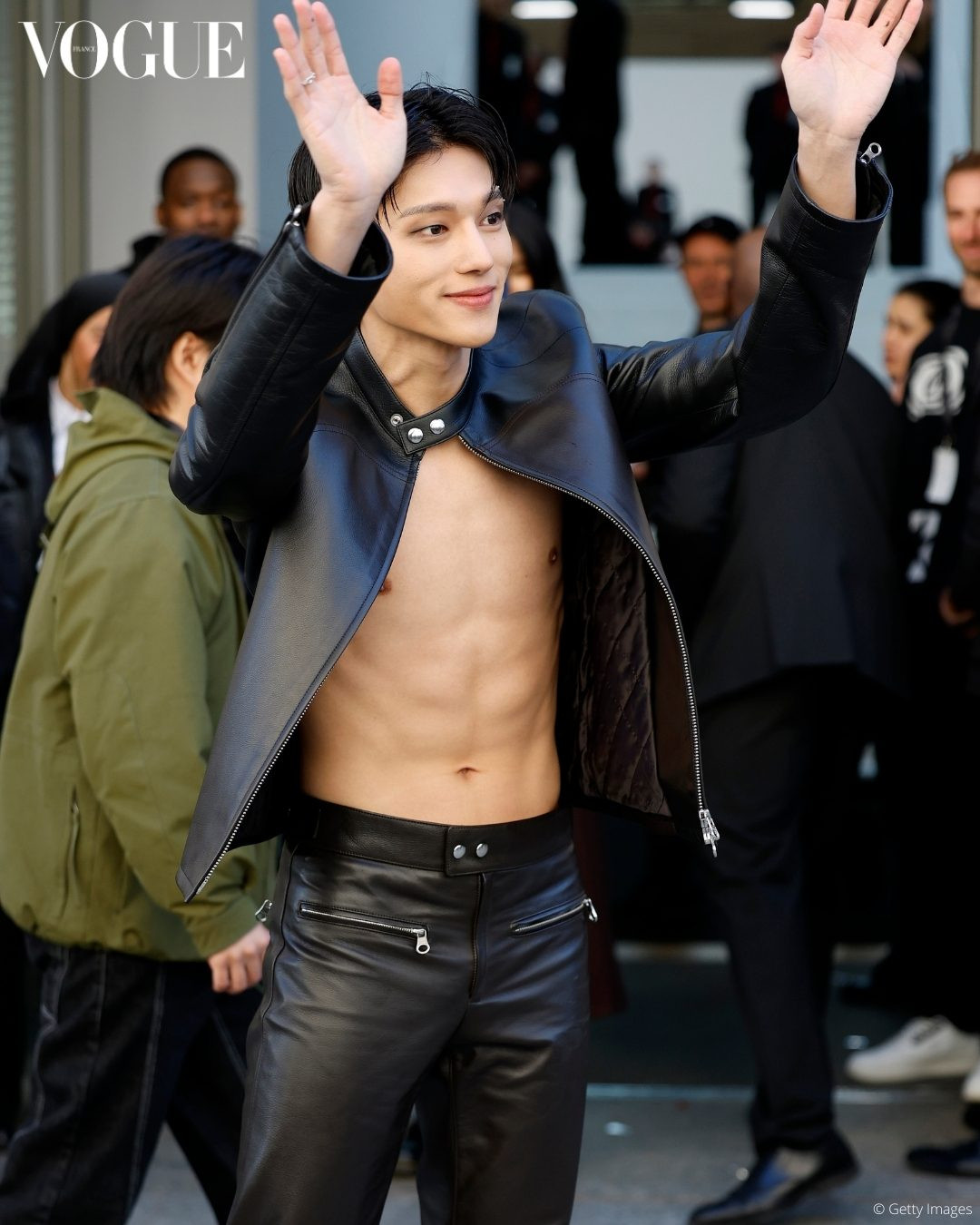 Wooyoung ATEEZ "đốt mắt" người hâm mộ khi dự show diễn của thương hiệu Courrèges. Nam idol khoe hình thể vạm vỡ, nam tính trong trang phục da đến từ look 43 thuộc BST Pre-Fall 2025 của nhà mốt.