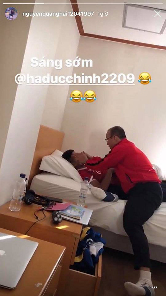 Những khoảnh khắc thầy Park selfie đáng yêu cùng học trò thường xuyên được các cầu thủ đội tuyển Việt nam chia sẻ.