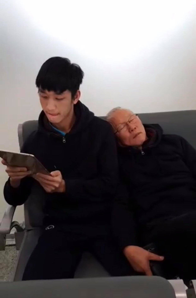 "Ngài ngủ gật" là một trong nhiều nickname người hâm mộ đặt cho thầy Park. Khoảnh khắc ông tựa đầu ngủ trên vai Trọng Đại ngoài sân bay hay gà gật trên băng ghế huấn luyện khiến nhiều người thích thú.